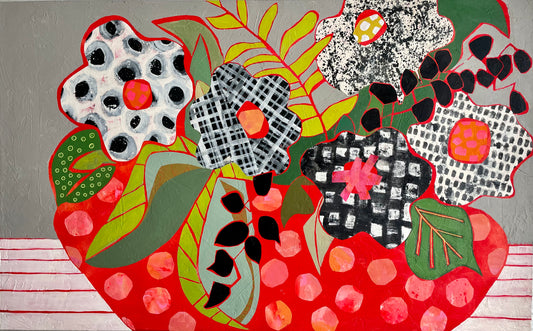 "Ode to Maximalism Bouquet" $800 - 24"x 24" Mixed media on gallery depth canvas