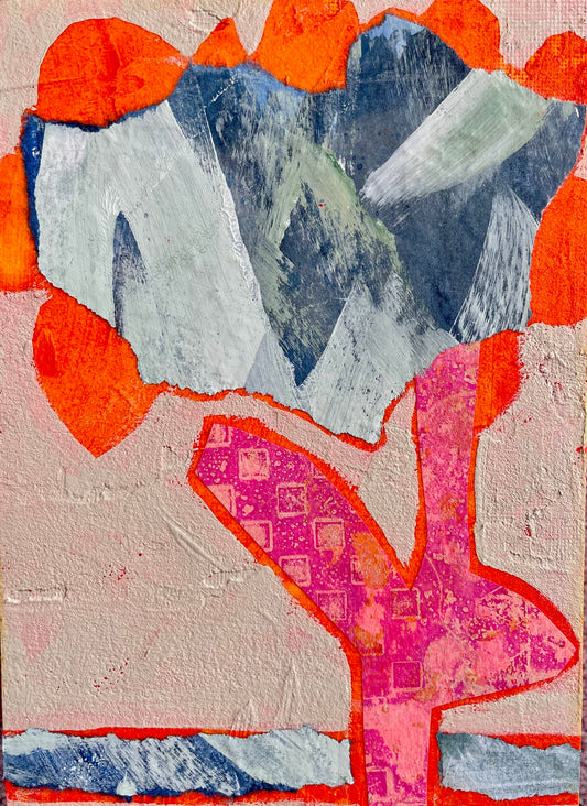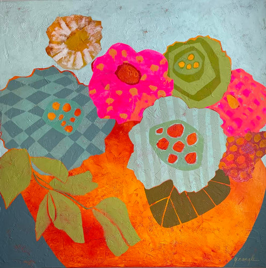"Capturing Bliss in an Orange Bowl" $670 - 24"x 18" Mixed media on gallery depth canvas