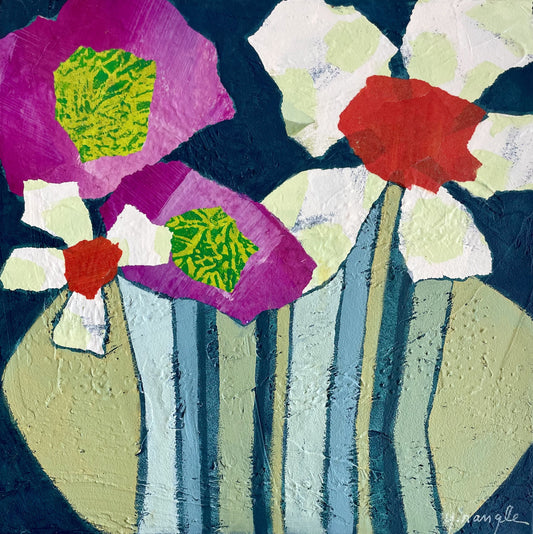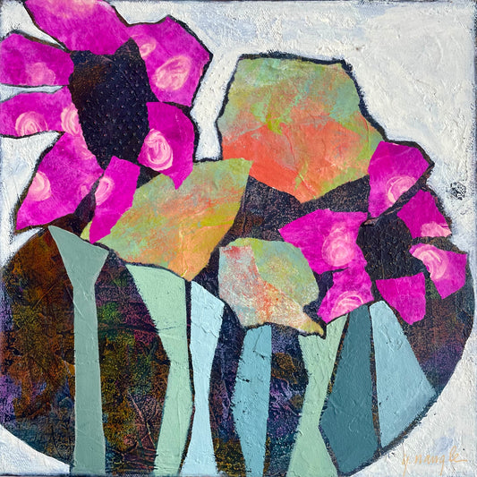 “Bowl Full Bloom” $165 8”x 8” acrylic paint and painted papers on gallery depth canvas