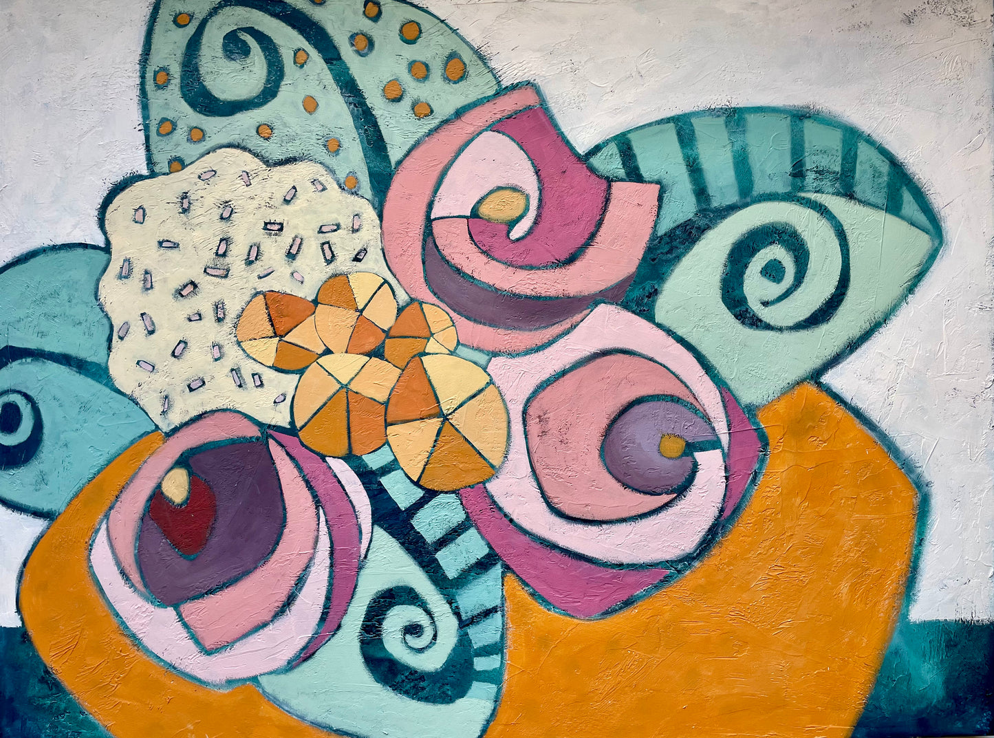 “The Shape of Positive Thoughts” $2200- 48" x 36” Acrylic on gallery depth canvas