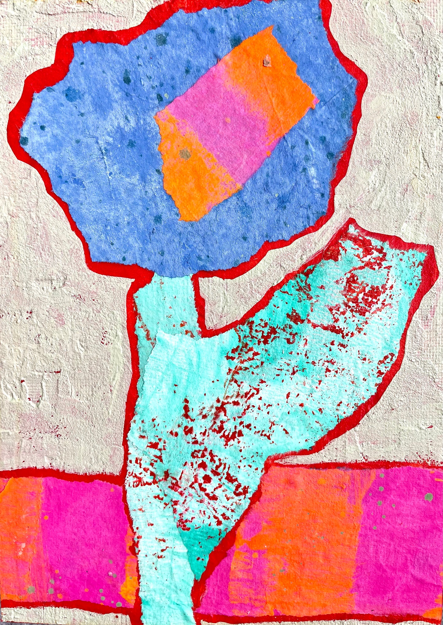 "Hello Orange and Pink" $90 5”x 7” acrylic paint and painted papers on gallery depth wooden canvas